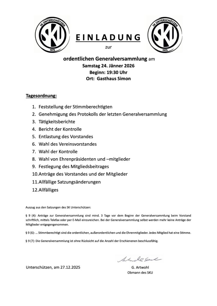 Auf www.instagram.com/sku1975 findest du die neuesten News und Vereinsupdates vom SK Unterschützen.